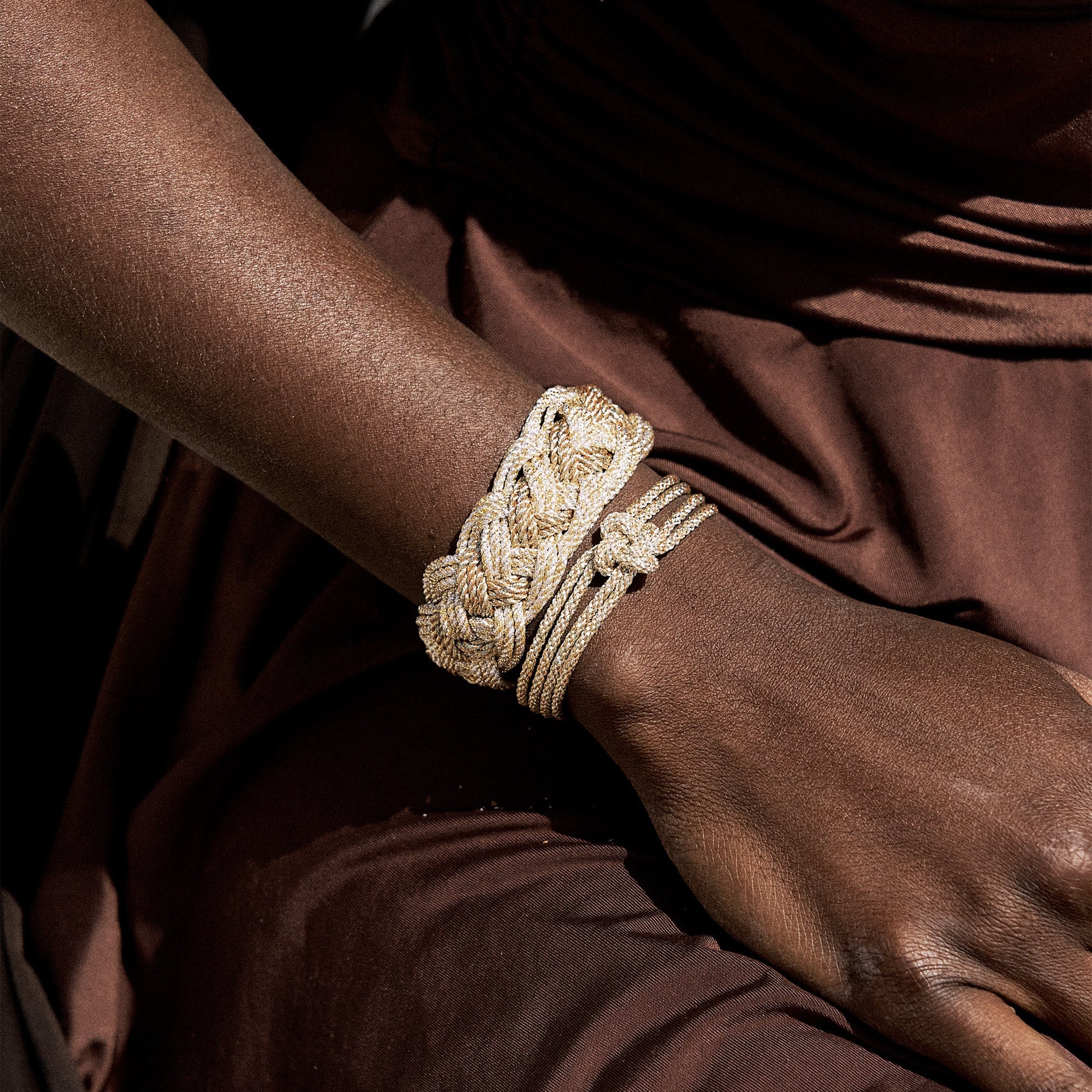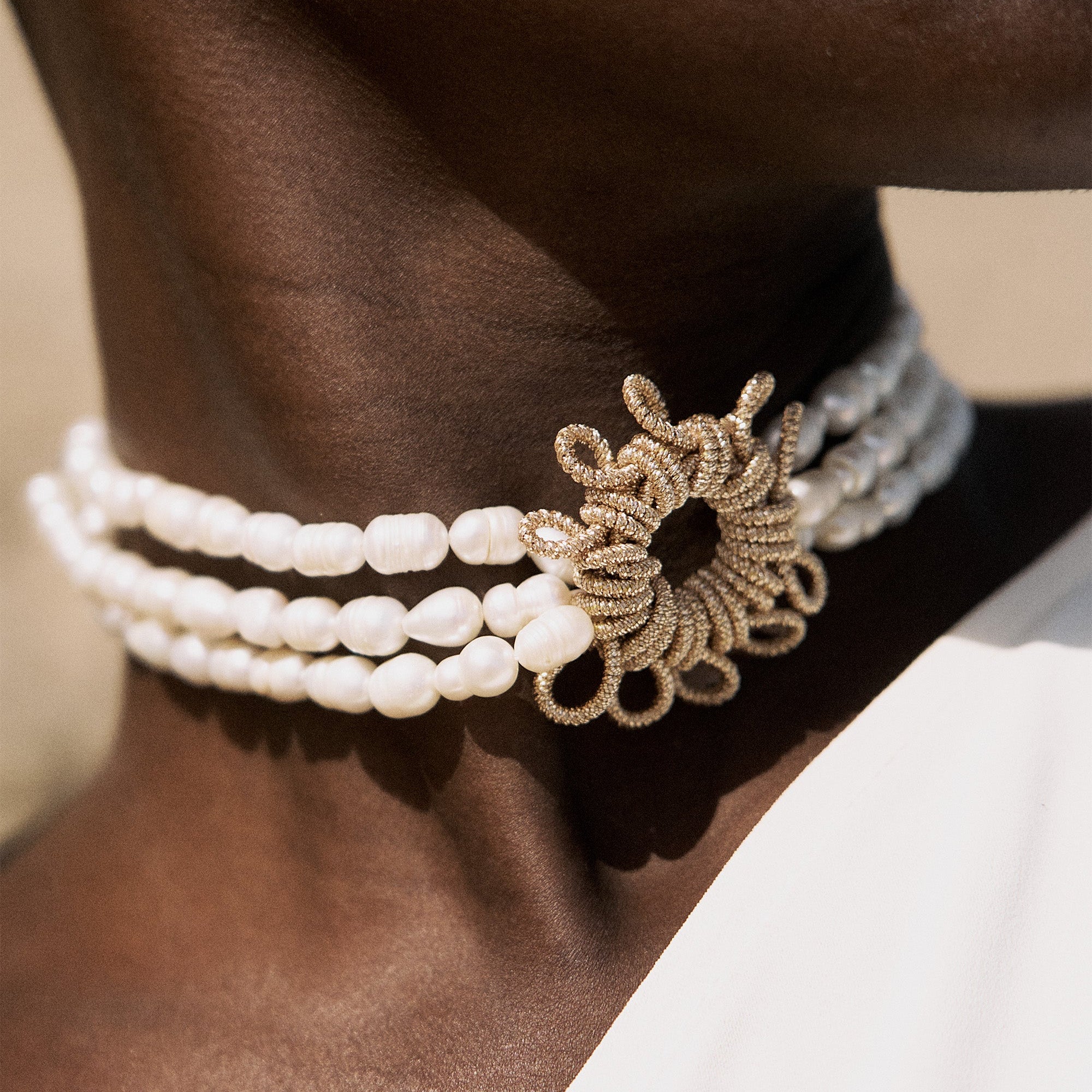 Each creation, from refined chokers to layered bracelets, carries the poetry of fluid lines and organic forms, reimagined through a contemporary lens.
