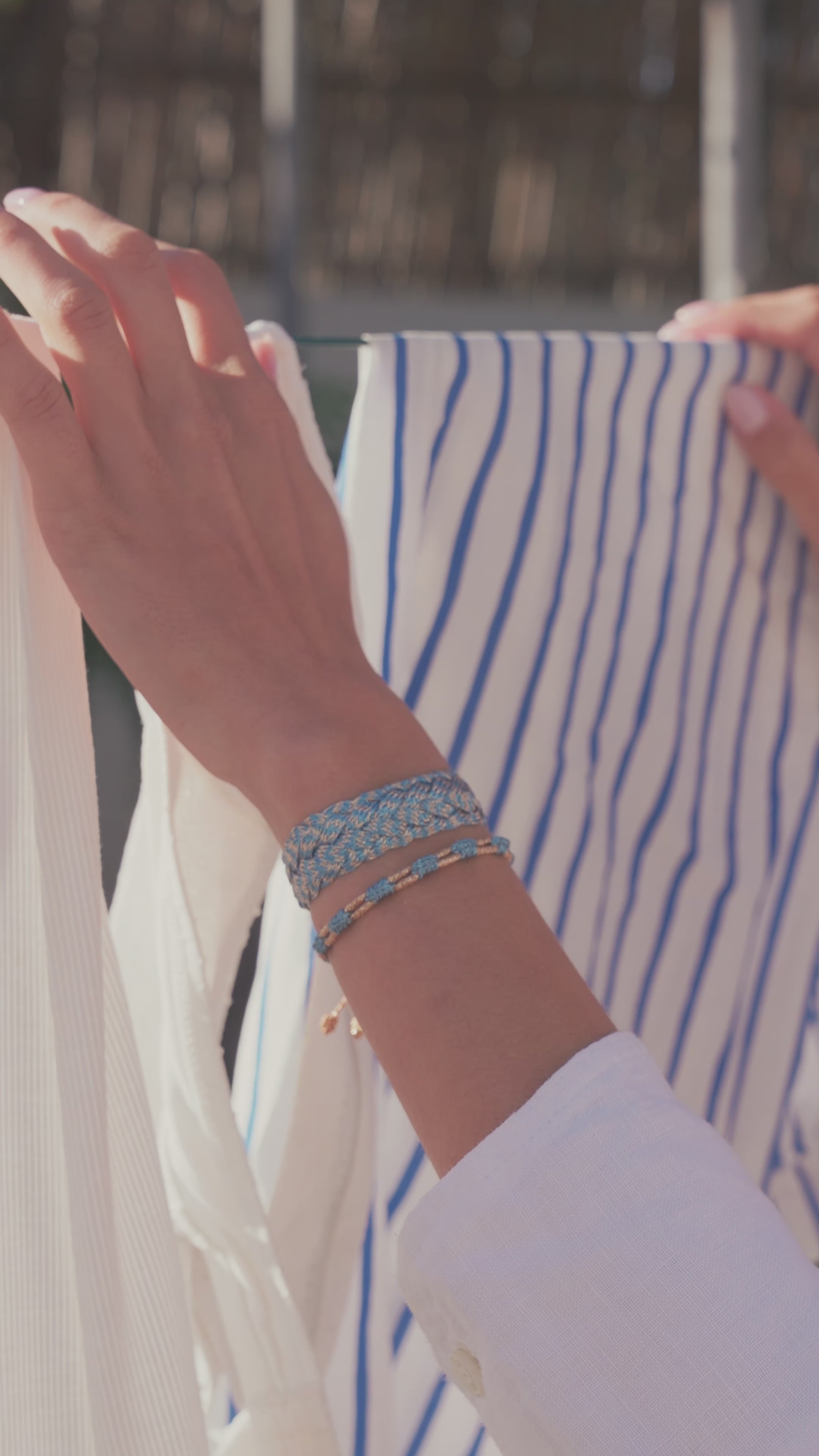 This piece is a subtle nod to the beauty of Mediterranean Moroccan shores, where pastel skies meet clear waters—perfect to wear solo or layered with other pieces.